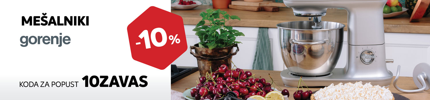 Spletna koda za 10 % popust velja od 1. 4. do 15. 4. 2020 pri nakupu v Spletnemu centru MERKUR na izbrane mešalnike Gorenje po rednih cenah. Ob plačilu v spletni košarici vnesite kodo 10ZAVAS. Kako unovčiti kodo pri spletnem nakupu si lahko preberete TUKAJ. Koda za popust se ne sešteva z ostalimi kuponi in boni.