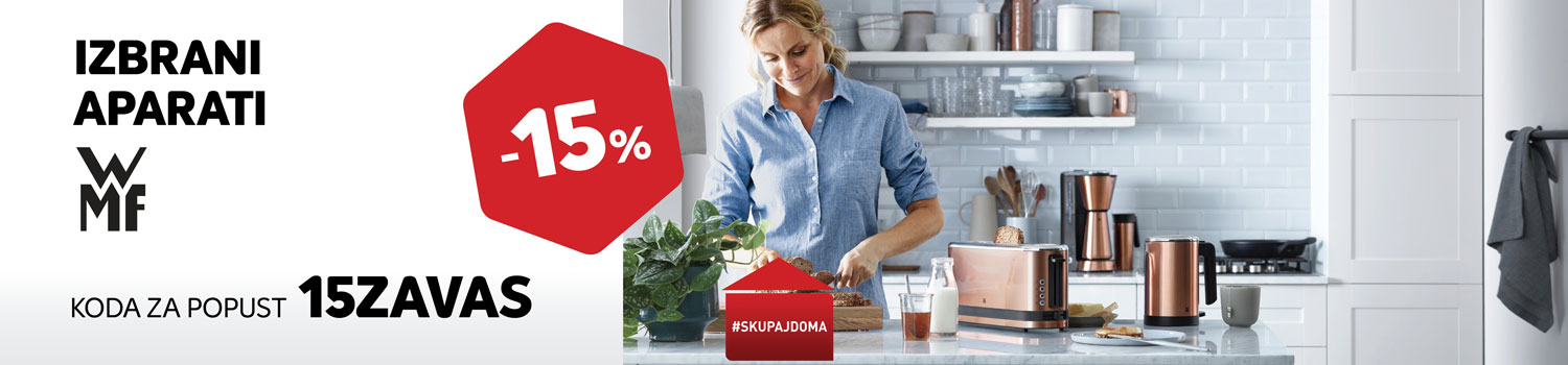 Spletna koda za 15 % popust velja od 1. 4. do 30. 4. 2020 pri nakupu v Spletnemu centru MERKUR na izbrane aparate WMF po rednih cenah. Ob plačilu v spletni košarici vnesite kodo 15ZAVAS. Kako unovčiti kodo pri spletnem nakupu si lahko preberete TUKAJ. Koda za popust se ne sešteva z ostalimi kuponi in boni.
