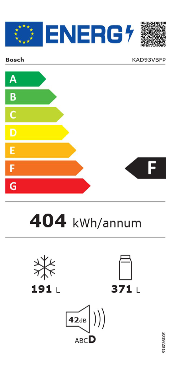 Blagovna znamka BOSCH VRSTA HLADILNIKA AMERIŠKI PROSTORNINA HLADILNI DEL 371 L PROSTORNINA ZAMRZOVALNI DEL 191 L LETNA PORABA ELEKTRIČNE ENERG. 404 KWH SAMODEJNO ODTAJEVANJE-NO FROST DA ŠIRINA 94 CM ZMOGLJIVOST ZAMRZOVANJA 13 KG/24 H VIŠINA 179 CM SHRANJEVALNI ČAS OB MOTNJAH 8 H GLOBINA 71 CM CONA SVEŽINE NE BARVA ČRNA POVEZLJIVOST WI-FI NE PRIKLOP NA VODO DA ENERGIJSKI RAZRED F INVERTERSKI KOMPRESOR DA KLIMATSKI RAZRED SN-T: +10 DO +43°C EMISIJA HRUPA 42 DB ODPIRANJE VRAT DVOJNA VRATA RAZRED EMISIJE HRUPA D GARANCIJA V LETIH 2 LETI -