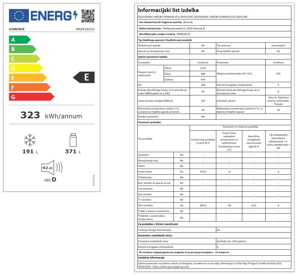 Blagovna znamka GORENJE ENERGIJSKI RAZRED E VRSTA HLADILNIKA AMERIŠKI PROSTORNINA HLADILNI DEL 371 L PROSTORNINA ZAMRZOVALNI DEL 191 L LETNA PORABA ELEKTRIČNE ENERG. 323 KWH SAMODEJNO ODTAJEVANJE-NO FROST DA ZMOGLJIVOST ZAMRZOVANJA 12 KG/24 H ŠIRINA 90,8 CM SHRANJEVALNI ČAS OB MOTNJAH 6 H CONA SVEŽINE DA GLOBINA 67,9 CM BARVA SIVA PRIKLOP NA VODO NE INVERTERSKI KOMPRESOR DA KLIMATSKI RAZRED N: +16 DO +32°C SN: +10 DO +32°C ST: +18 DO +38°C EMISIJA HRUPA 42 DB RAZRED EMISIJE HRUPA D ODPIRANJE VRAT DVOJNA VRATA POVEZLJIVOST WI-FI NE VIŠINA 179,3 CM GARANCIJA V LETIH 5 Mnenja
