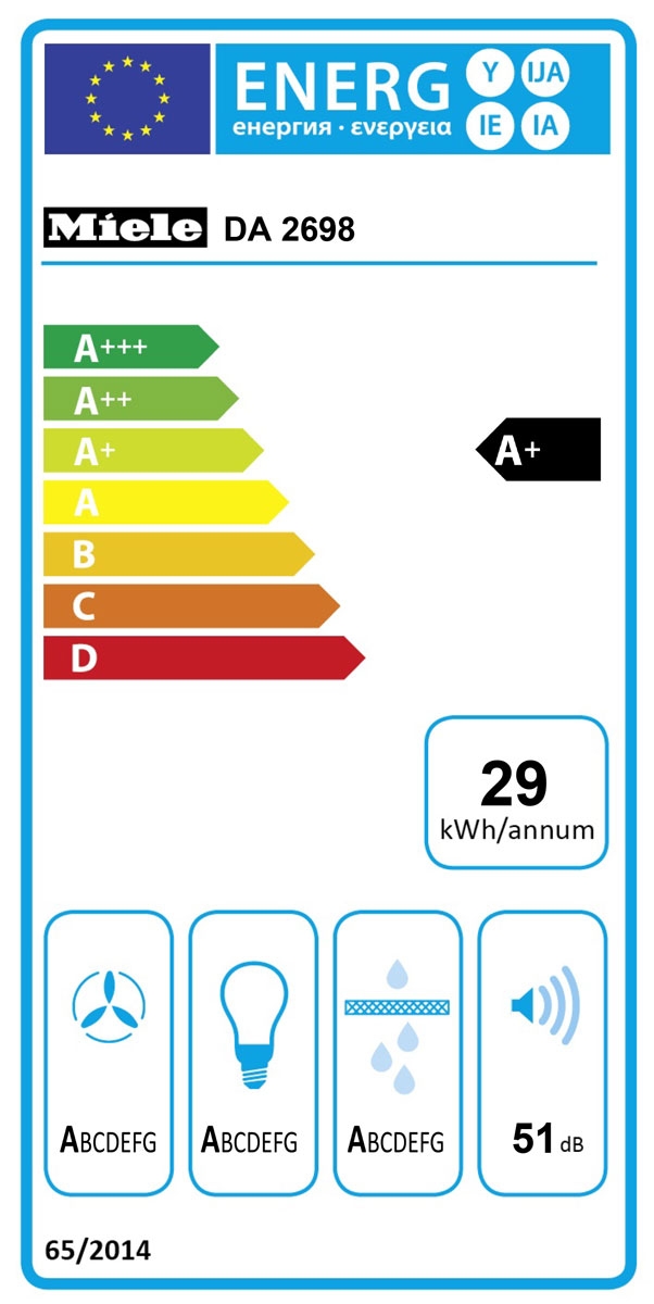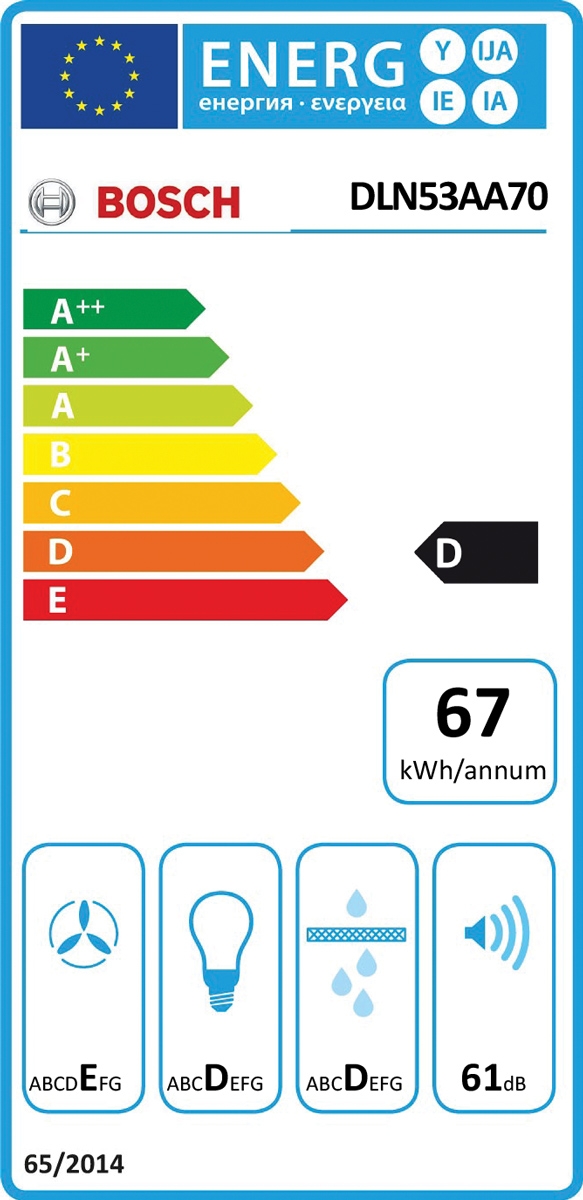 - Glasnost delovanja se giblje od 51 dB pri tišjih kuhinjskih napah, pa vse do 69 dB pri napah z večjim zračnim pretokom.