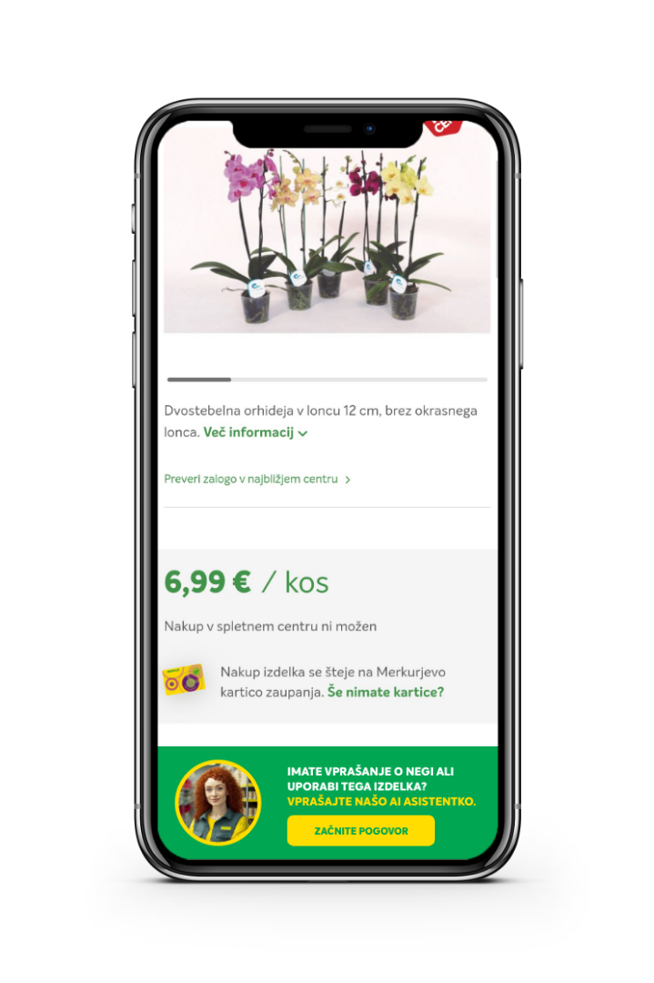 Odslej lahko ob vsakem izdelku s področja vrta in okolice najdete poseben gumb, ki vam omogoča pogovor z AI asistentko.