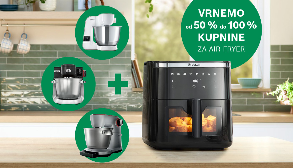 ob hratnem nakupu robota in Air Fryerja Bosch povrne 50 % kupnine