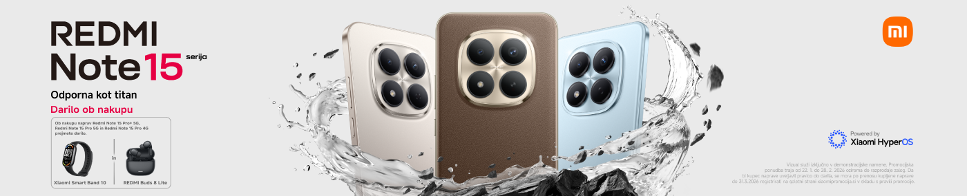 V času promocije, od 22. 1. do 28. 2. 2026 bodo imeli vsi kupci izbranih telefonov XIAOMI REDMI NOTE 15 PRO pravico, da se prijavijo za darilo XIAOMI Redmi Buds 8 lite in XIAOMI Smart Band 10. Za uveljavljanje pravice do darila se mora končni uporabnik, ki je kupil napravo iz te promocijske dejavnosti, po prejemu te naprave registrirati in prijaviti na linku:   https://xiaomipromocija.si/, najkasneje do 31. 3. 2026. Več informacij in pravila promocije so na voljo TUKAJ.