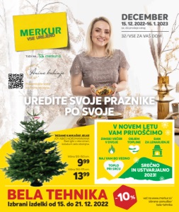 24 centrov 1 BELA TEHNIKA več nawww.merkur.si/ izbrana-ponudba/ bela-tehnika Izbrani izdelki od 15. do 21. 12. 2022 DECEMBER 15. 12. 2022-16. 1. 2023 oz. do prodaje zalog 32/VSE ZA VAŠ DOM - 10 % Višina 120-150 cm. 999 Višina 150-175 cm. 1399 REZANE KAVKAŠKE JELKE JOY ABIES NORDMANNIANA Rast iglic v obe smeri, košata in zelo obstojna. Poskenirajte kodo za Anine recepte. UREDITE SVOJE PRAZNIKE PO SVOJE SREČNO IN USTVARJALNO 2023! ZIMSKI VEČER V DVOJE OBJEM TOPLINE DAN ZA LENARJENJE NAJ VAM BO VEDNO TOPLO PRI SRCU