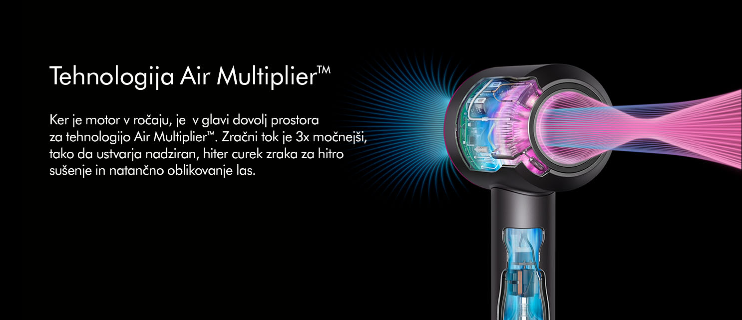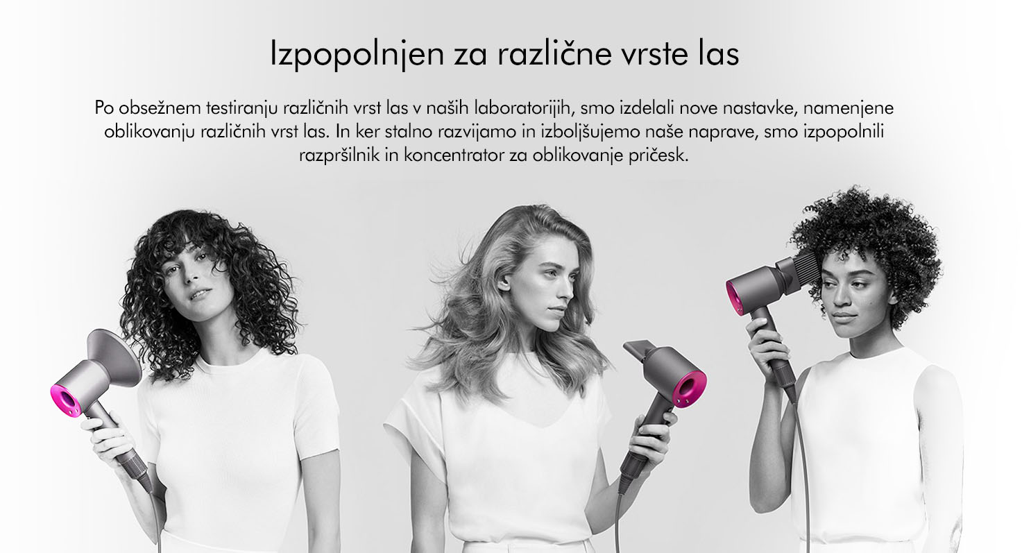 Širša, tanjša oblika izpopolnjenega koncentratorja omogoča visoko hitrost dotoka zraka, kar je idealno za oblikovanje las. In ker je zrak usmerjen, lahko oblikujete posamezne pramene, ne da bi vplivali na ostale.
