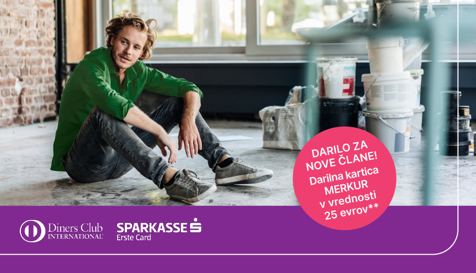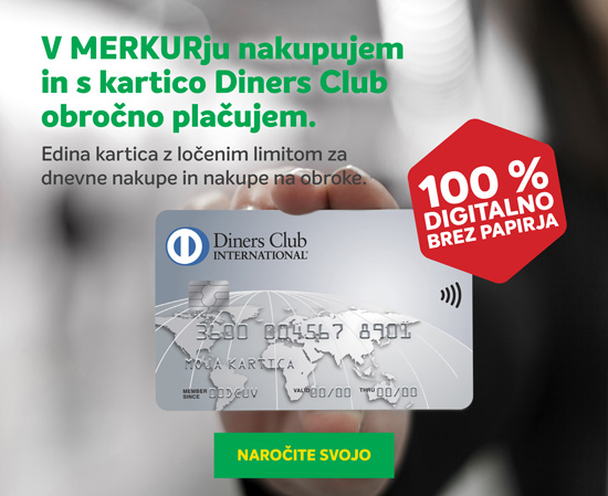 Izdelajte si svojo kartico Diners Club v MERKURju in prvo leto uživajte v brezplačni članarini* ter prejmite darilno kartico MERKUR v vrednosti 25 EUR**!