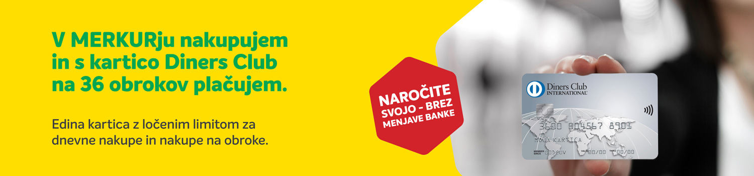V trgovinah MERKUR si lahko vsak drugi in četrti torek v mesecu ob plačilu s kartico Diners Club zagotovite 10% popust* na izbran izdelek.