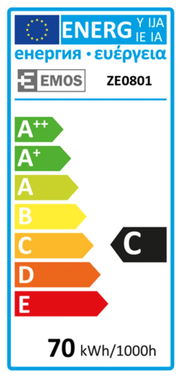 Blagovna znamka EMOS ENERGIJSKI RAZRED C MOČ 70 W SVETLOBNI TOK 1300 LM BARVNA TEMPERATURA 2700 °K PONDER.PORABA EL.EN. ZA 1000UR 70 KWH Mnenja