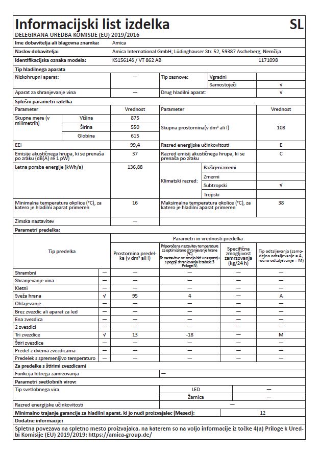 HLADILNIK AMICA KS15614S