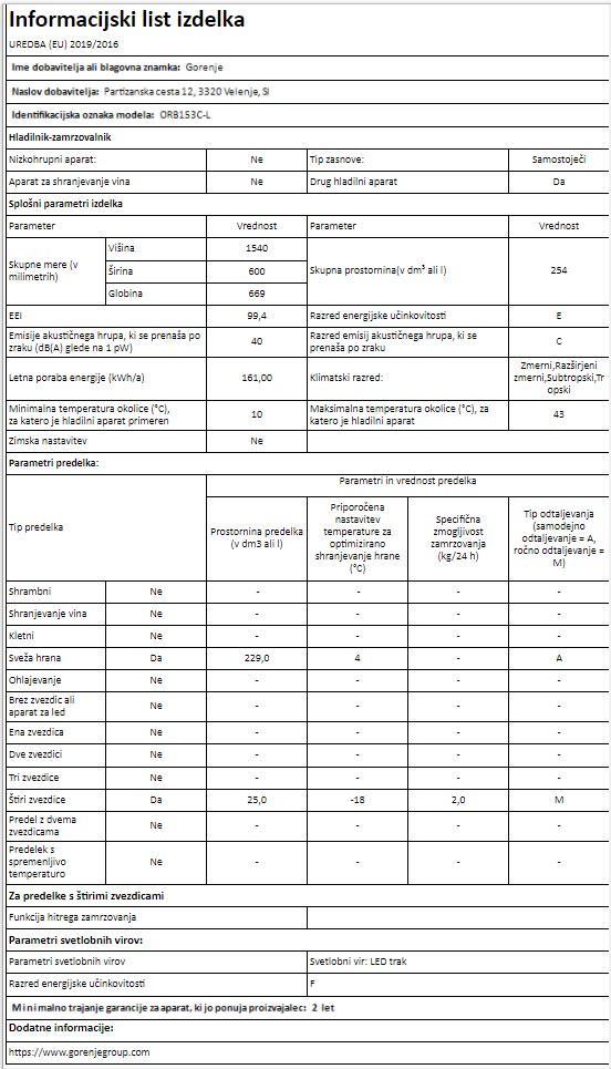 HLADILNIK GORENJE ORB153C-L