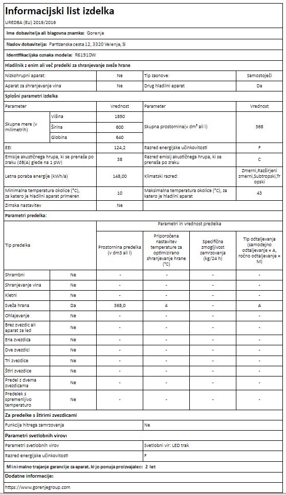 Izdelek priznanega slovenskega proizvajalca Gorenje je hladilnik se ponaša s 368 L uporabne prostornine. Med drugim uporabniku ponuja dinamično hlajenje, mehansko upravljanje hladilnika, notranjost osvetljuje prek LED traku na stropu, živila pa boste lahko razporedili preko 7 polic. Dve odlična predala z regulacijo vlage ustvarja idealne pogoje za shranjevanje sadja in zelenjave. Na ta način ohranjajo daljšo obstojnost ter večjo vitaminsko bogatost.