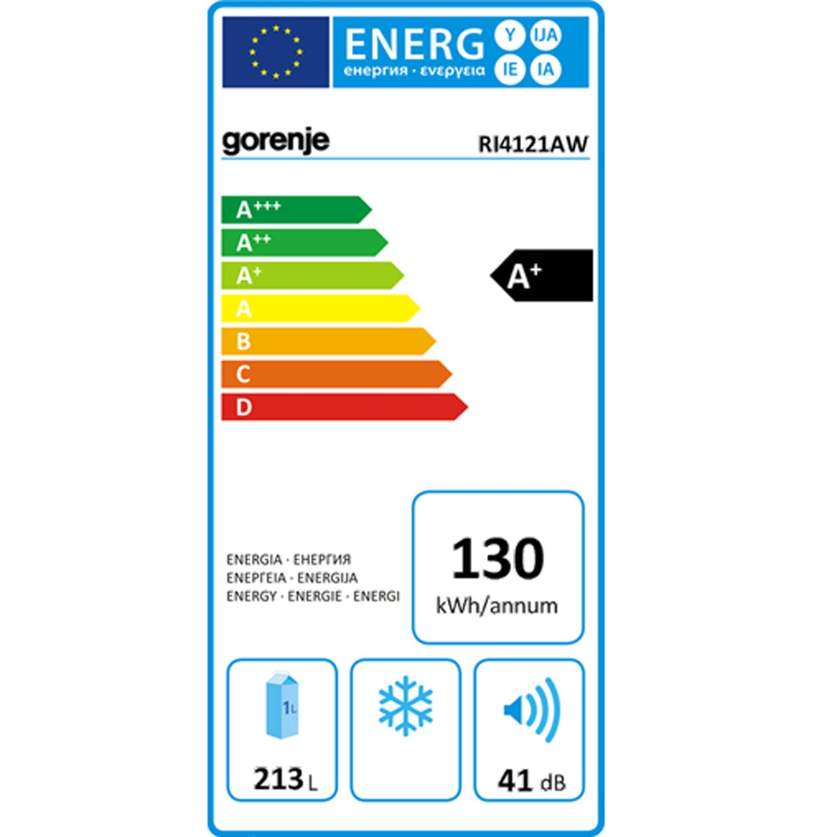 Vgradni hladilnik priznanega proizvajalca Gorenje odlikujejo visoka energijska učinkovitost, saj naprava spada v razred A+. Tako deluje stroškovno in energetsko visoko učinkovito. V prostornem hladilnem delu lahko na 5 steklenih policah ter dodatnih 4 v vratih shranimo veliko količino živil. Ima levo/desno menljivo odpiranje vrat in drsni tečaj. S tem lahko polno izkoristimo vsak kotiček prostora. Hladilnik ima med drugim dodano posodo za shranjevanje zelenjave ter 2 manjša vložka za jajca. Zaradi svoje oblike in bele barve se enostavno prilega vsakemu prostoru in oblikovanosti pohištva.