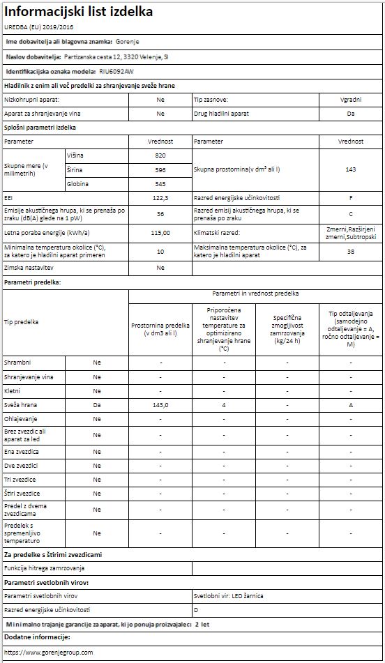 HLADILNIK GORENJE RIU6092AW
