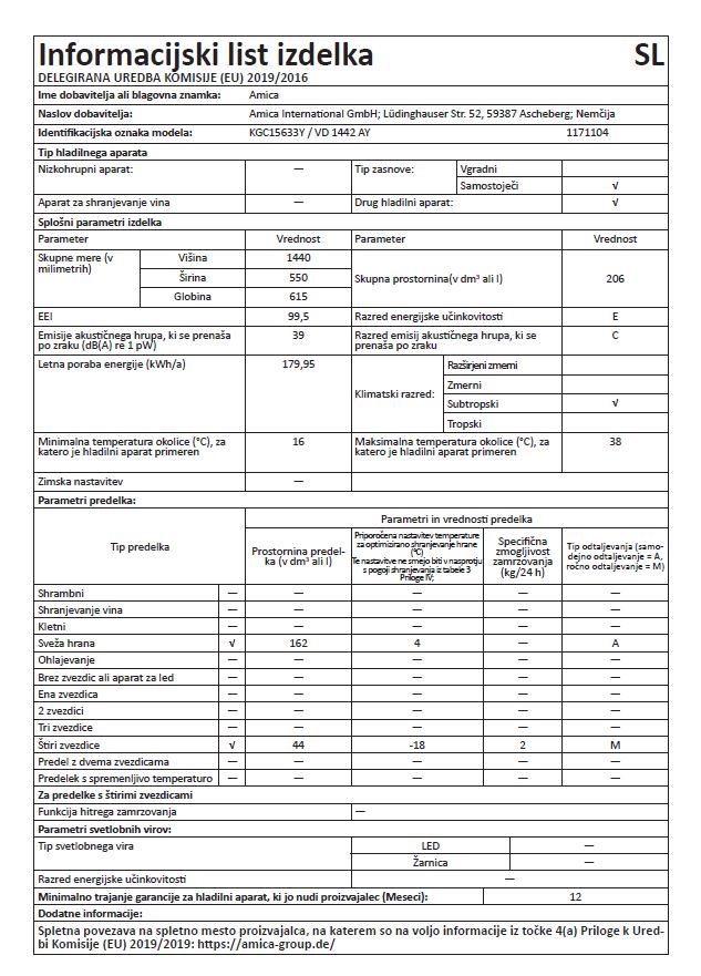 HLADILNIK IN ZAMRZOVALNIK AMICA KGC15633Y