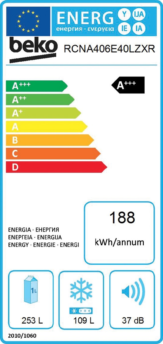 Blagovna znamka BEKO VRSTA HLADILNIKA SAMOSTOJNI, ZAMRZ. SPODAJ BARVA INOX PROSTORNINA HLADILNI DEL 253 L ŠIRINA 59,5 CM PROSTORNINA ZAMRZOVALNI DEL 109 L VIŠINA 203 CM LETNA PORABA ELEKTRIČNE ENERG. 188 KWH GLOBINA 66,5 CM SAMODEJNO ODTAJEVANJE-NO FROST DA ZMOGLJIVOST ZAMRZOVANJA 6 KG/24 H GLASNOST DELOVANJA 37 DB CONA SVEŽINE DA POVEZLJIVOST WI-FI NE ENERGIJSKI RAZRED A+++ INVERTERSKI KOMPRESOR DA KLIMATSKI RAZRED SN-ST: +10 DO +38°C ODPIRANJE VRAT DESNO GARANCIJA V LETIH 2 LETI - Mnenja
