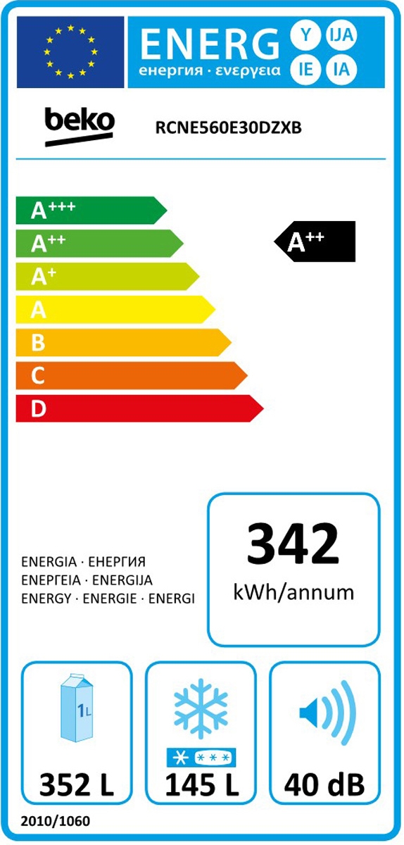 Kombinirani hladilnik z zamrzovalnikom spodaj v A++ energijskem razredu. Vodni dozirnik. Neo Frost. Predal za daljšo svežino poskrbi, da sadje, zelenjava, ribe in meso ostanejo sveži dlje časa. Tehnologija aktivne modre svetlobe