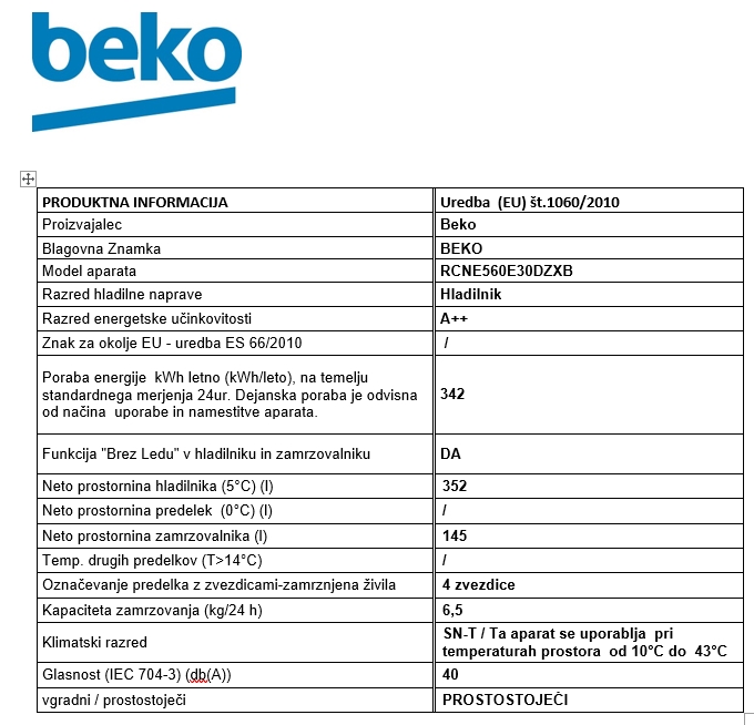 HLADILNIK IN ZAMRZOVALNIK BEKO RCNE 560E30DZXB