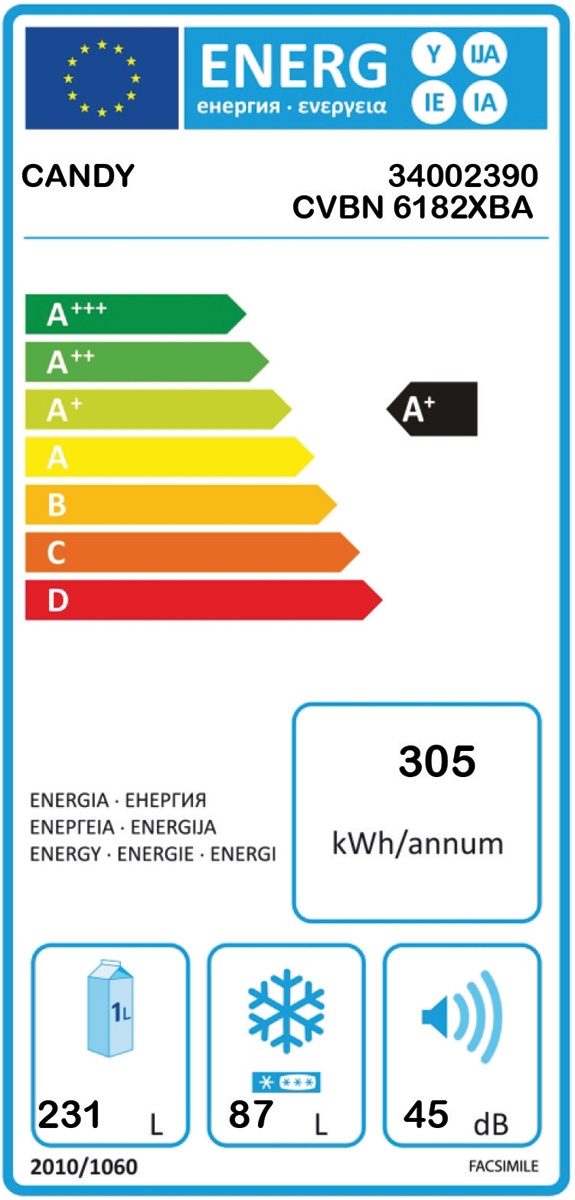 Prostostoječi No-Frost hladilnik CVBN 6182XBA v inox barvi z zamrzovalnikom spodaj se uvršča v A+ energijski razred in ima prostornino 231l v hladilnem in 87l v zamrzovalnem predelu. Hladilnik ima štiri steklene police, dva velika predala za sadje in zelenjavo ter štiri police na vratih. Zmogljivost zamrzovanja je 4,2kg/24h. Hladilnik spada v klimatski razred T z glasnostjo delovanja 45 dB. Za dobro preglednost v hladilniku skrbi LED osvetlitev, za odpiranje pa ima ročaj v srebrni barvi.