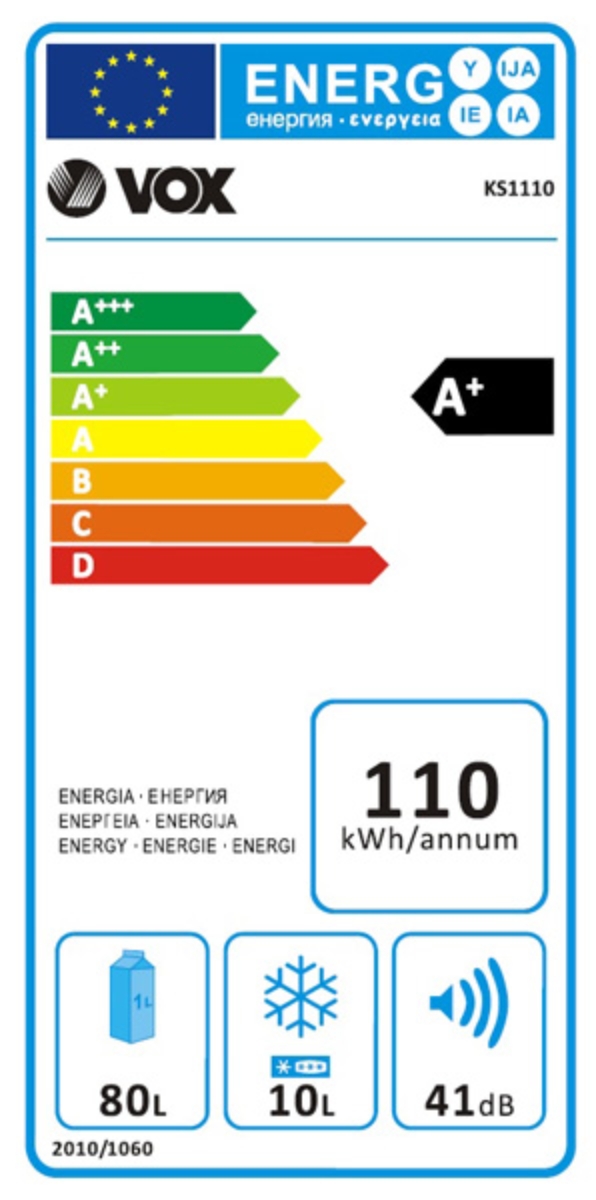 Blagovna znamka VOX VRSTA HLADILNIKA SAMOSTOJNI PROSTORNINA HLADILNI DEL 80 L PROSTORNINA ZAMRZOVALNI DEL 10 L LETNA PORABA ELEKTRIČNE ENERG. 110 KWH ŠIRINA 48 CM SAMODEJNO ODTAJEVANJE-NO FROST NE ZMOGLJIVOST ZAMRZOVANJA 2 KG/24 H VIŠINA 82,1 CM GLOBINA 50 CM SHRANJEVANJE OB IZPADU EL.ENER 10 H GLASNOST DELOVANJA 41 DB CONA SVEŽINE NE BARVA BELA INVERTER MOTOR NE ENERGIJSKI RAZRED A+ KLIMATSKI RAZRED ST: +18 DO +38°C ODPIRANJE VRAT LEVO/DESNO GARANCIJA V LETIH 5 LET -