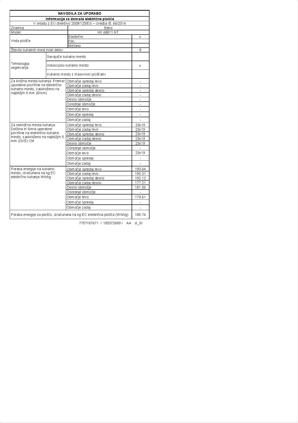 Blagovna znamka BEKO VRSTA KUHALIŠČA INDUKCIJA ŠTEVILO KUHALIŠČ 4 UPRAVLJANJE ELEKTRONSKO ŠIRINA 58 CM VIŠINA 51 CM GLOBINA 5,5 CM POVEZLJIVOST WI-FI NE GARANCIJA V LETIH 2 LETI -