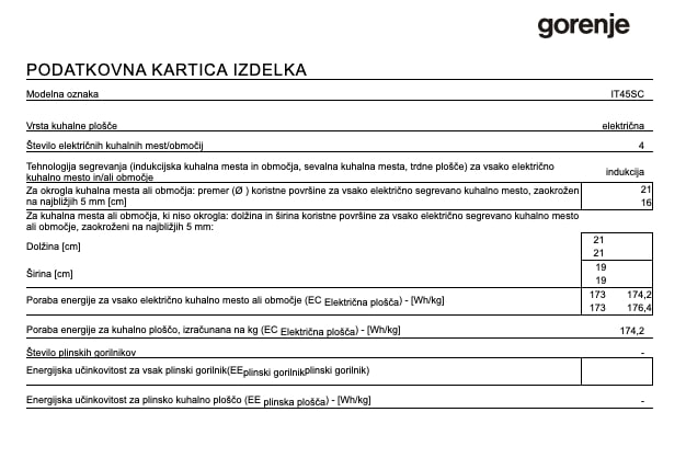INDUKCIJSKA PLOŠČA GORENJE IT45SC