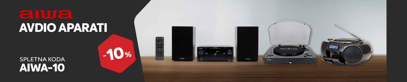 Spletna koda za 10 % popusta velja od 23. 6. do 7. 7. 2025 pri nakupu v Spletnemu centru Merkur na avdio izdelke AIWA. Ob plačilu v spletni košarici vnesite kodo AIWA-10. Koda za popust se ne sešteva z ostalimi kuponi in boni. Koda velja za nakupe po rednih cenah in ne velja na ostale akcije. Koda ne velja na izdelke označene z oznako SPLETNI HIT. Kako unovčiti kodo pri spletnem nakupu, si lahko preberete TUKAJ.