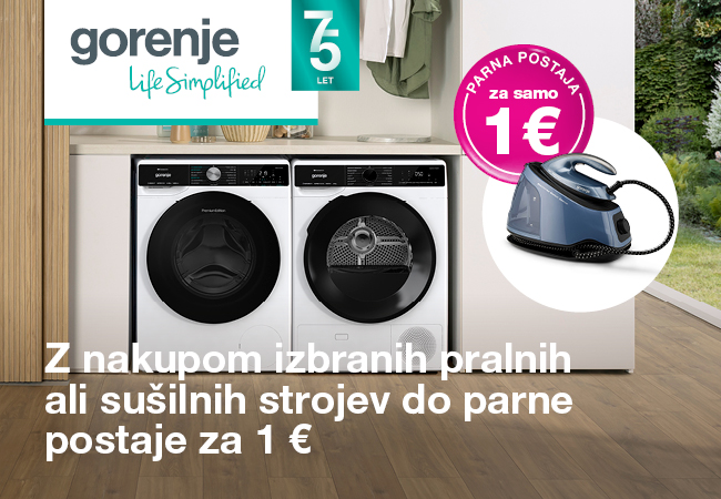1. V času trajanja akcije med 1. 9. in 31. 10. 2025 kupite izbran pralni, sušilni ali pralno-sušilni stroj Gorenje.