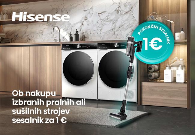 1. V času trajanja akcije med 1. 12. 2025 in 31. 1. 2026 kupite izbrane izdelke gospodinjskih aparatov blagovne znamke Hisense pri katerem koli trgovcu v Sloveniji.