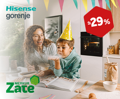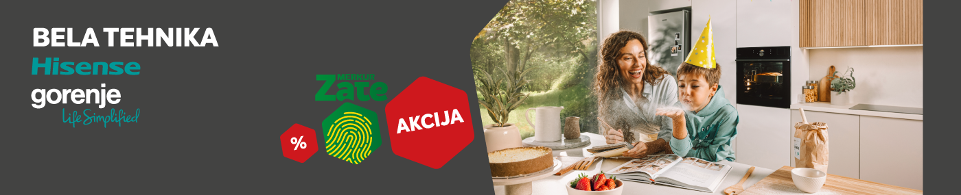 Akcija na izbrane izdelke bele tehnike Gorenje in Hisense velja samo za člane programa zvestobe MERKUR Zate. Akcija velja od 7. 1. do 3. 2. 2026.