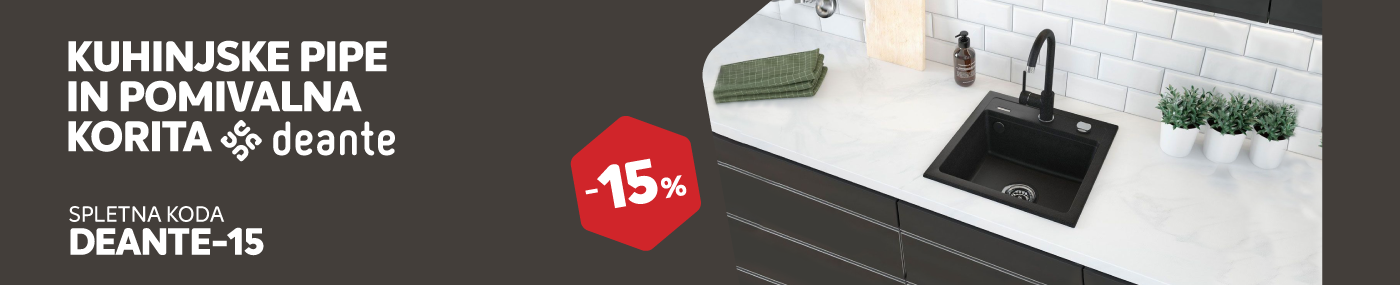 Spletna koda za 15 % popusta velja od 2. do 15.11.2023 pri nakupu v Spletnem centru Merkur na pomivalna korita in pipe Deante. Ob plačilu v spletni košarici vnesite kodo DEANTE-15. Koda za popust se ne sešteva z ostalimi kuponi in boni. Koda velja za nakupe po rednih cenah in ne velja na ostale akcije. Kako unovčiti kodo pri spletnem nakupu, si lahko preberete TUKAJ.
