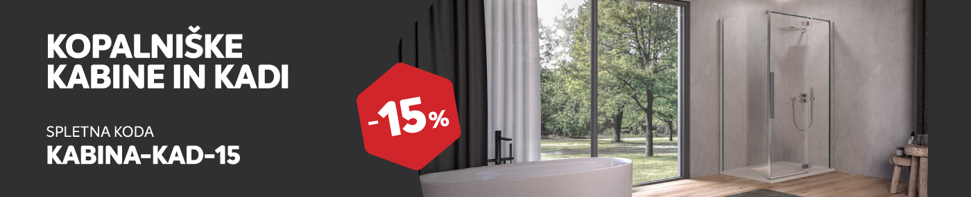 Spletna koda za 15% popusta velja od 17. do 30.11.2025 pri nakupu v Spletnem centru Merkur na izbrane kopalniške kabine in kadi. Ob plačilu v spletni košarici vnesite kodo KABINA-KAD-15. Koda za popust se ne sešteva z ostalimi kuponi in boni. Koda velja za nakupe po rednih cenah in ne velja na ostale akcije. Kako unovčiti kodo pri spletnem nakupu, si lahko preberete TUKAJ.