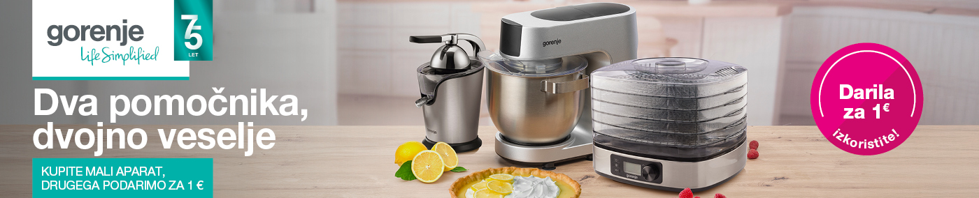 Ob nakupu izbranega malega gospodinjskega aparata Gorenje, kupec po registraciji na spletni strani si.gorenje.com prejmejo darilo za 1 €. Od paličnega