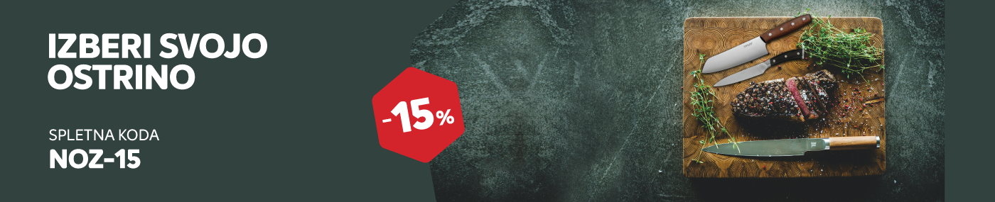 Spletna koda za 15% popusta velja od 1. do 15.7.2025 pri nakupu v Spletnem centru Merkur na izbrane nože in rezila. Ob plačilu v spletni košarici vnesite kodo