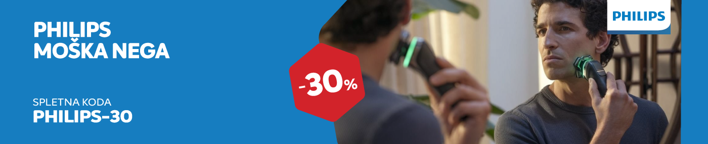 Ob plačilu v spletni košarici vnesite kodo PHILIPS-30. Koda za popust se ne sešteva z ostalimi kuponi in boni. Koda velja za nakupe po rednih cenah in ne velja na ostale akcije. Kako unovčiti kodo pri spletnem nakupu, si lahko preberete TUKAJ.