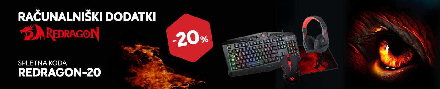Spletna koda za 20 % popusta velja od 16. 1. do 31. 1. 2026 pri nakupu v Spletnemu centru Merkur na izdelke blagovne znamke REDRAGON. Ob plačilu v spletni košarici vnesite kodo REDRAGON-20. Koda za popust se ne sešteva z ostalimi kuponi in boni. Koda velja za nakupe po rednih cenah in ne velja na ostale akcije. Koda ne velja na izdelke označene z oznako SPLETNI HIT. Kako unovčiti kodo pri spletnem nakupu, si lahko preberete TUKAJ.