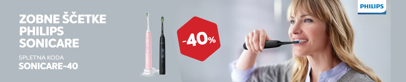 Spletna koda za 40 % popusta velja od 14. do 30. 4. 2025 pri nakupu v Spletnemu centru Merkur na izbrane električne zobne ščetke Sonicare. Ob plačilu v spletni košarici vnesite kodo SONICARE-40. Koda za popust se ne sešteva z ostalimi kuponi in boni. Koda velja za nakupe po rednih cenah in ne velja na ostale akcije ter na izdelke, označene z voblerjem SPLETNI HIT. Kako unovčiti kodo pri spletnem nakupu, si lahko preberete TUKAJ.