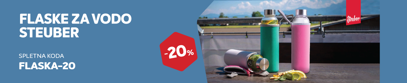 Spletna koda za 20 % popusta velja od 4. 8. do 3. 9. 2023 pri nakupu v Spletnemu centru Merkur na plastenke in stekelnice znamke Steuber. Ob plačilu v spletni košarici vnesite kodo FLASKA-20. Koda za popust se ne sešteva z ostalimi kuponi in boni. Koda velja za nakupe po rednih cenah in ne velja na ostale akcije. Kako unovčiti kodo pri spletnem nakupu, si lahko preberete TUKAJ.