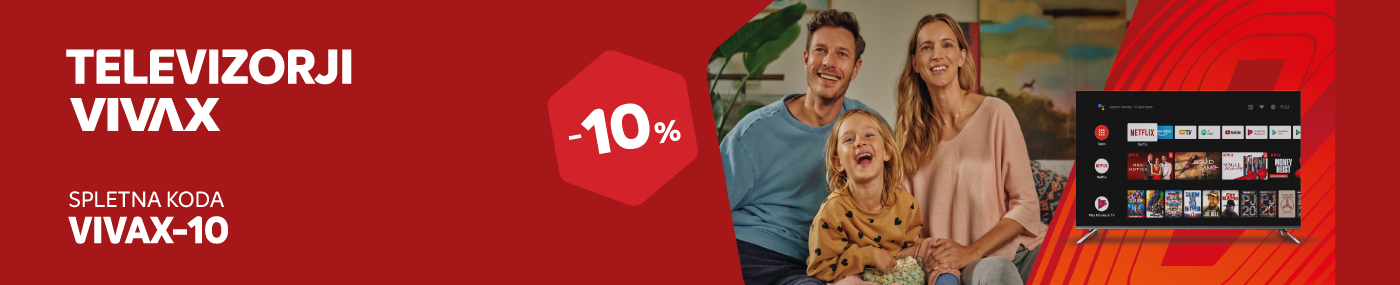 Spletna koda za 10 % popusta velja od 18. 11. do 30. 11. 2025 pri nakupu v Spletnemu centru Merkur na televizorje VIVAX. Ob plačilu v spletni košarici vnesite kodo VIVAX-10. Koda za popust se ne sešteva z ostalimi popusti, kuponi in boni. Koda velja za nakupe po rednih cenah in ne velja na ostale akcije in izdelke označene z oznako SPLETNI HIT. Kako unovčiti kodo pri spletnem nakupu, si lahko preberete TUKAJ.