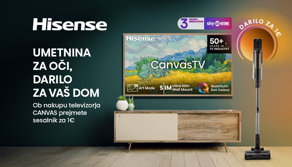 V času trajanja akcije od 3. februarja do 30. junija 2025 opravite nakup izbranega televizorja Hisense. Akcija velja za model televizorja Hisense Canvas 55S7NQ. Po nakupu izpolnite elektronski obrazec na spletni strani si.hisense.com ali pošljite kopijo računa na naslov Gorenje GSI d.o.o., Hrvaška ulica 4, 1000 Ljubljana, z navedbo potrebnih podatkov (ime, priimek, naslov, e-mail, telefon in serijska številka televizorja).V kolikor bo prijava v skladu z navedenimi pogoji, boste v roku najkasneje 40 dni na navedeni naslov po pošti prejeli pripadajoče darilo za samo 1 €.Upoštevali bomo samo račune, na katerih bo jasno razvidna modelna oznaka, številka računa, datum nakupa in trgovina nakupa. Predračunov in avans računov ne bomo upoštevali. Upoštevali bomo račune, ki bodo prispeli preko registracije ali po pošti na naš naslov do vključno 14. julija 2025.