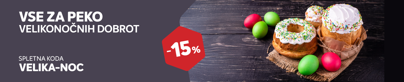 Spletna koda za 15% popusta velja od 1. do 21.4.2025 pri nakupu v Spletnem centru Merkur na izbrane pripomočke za peko velikonočnih dobrot. Ob plačilu v spletni košarici vnesite kodo VELIKA-NOC. Koda za popust se ne sešteva z ostalimi kuponi in boni. Koda velja za nakupe po rednih cenah in ne velja na ostale akcije. Kako unovčiti kodo pri spletnem nakupu, si lahko preberete TUKAJ.