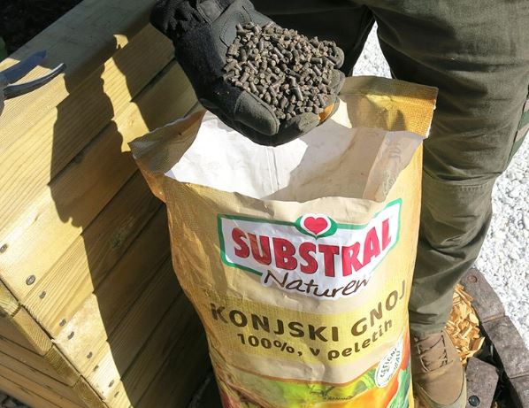 Za uporabo že pripravljeno gnojilo iz konjskih fig v peletih