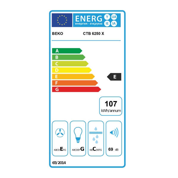 Blagovna znamka BEKO ENERGIJSKI RAZRED E VRSTA NAPE IZVLEČNA UPRAVLJANJE MEHANSKO LETNA PORABA ENERGIJE 107 KWH RAZRED UČINKOV. PRETOKA ZRAKA E PRETOK ZRAKA DO 420 M3/H RAZRED UČINKOV. OSVETLJEVANJA G GLASNOST DELOVANJA 69 DB RAZRED UČINKOV. FILTR. MAŠČOB C ŠIRINA 60 CM BARVA INOX GARANCIJA V LETIH 2 LETI Mnenja