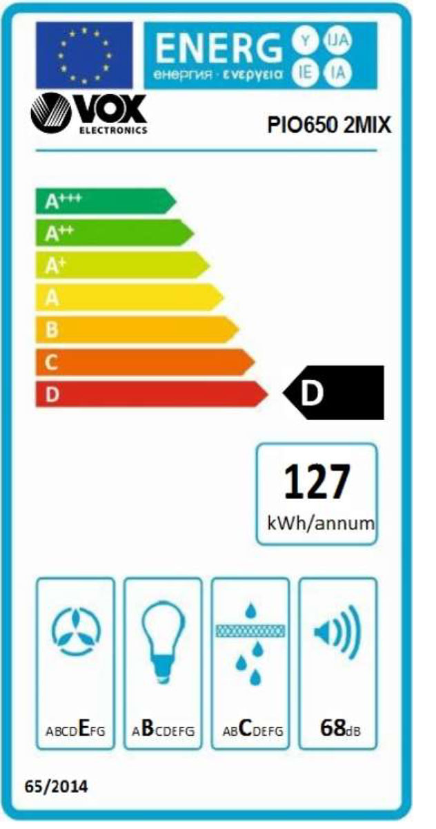 Vox Electronics kuhinjska napa PIO 6502MIX predstavlja odlično razmerje med nizko ceno ter dobrimi specifikacijami. Ima 2 motorja, ki omogočata maksimalni pretok zraka do 483 m/h. Izbirali boste lahko med tremi hitrostmi, glede na učinek prezračevanja, ki ga želite doseči. Vox Electronics kuhinjska napa se uvršča v energijski razred D, njena glasnost pa med delovanjem znaša 68 dB.