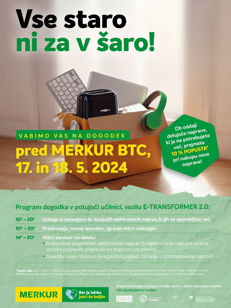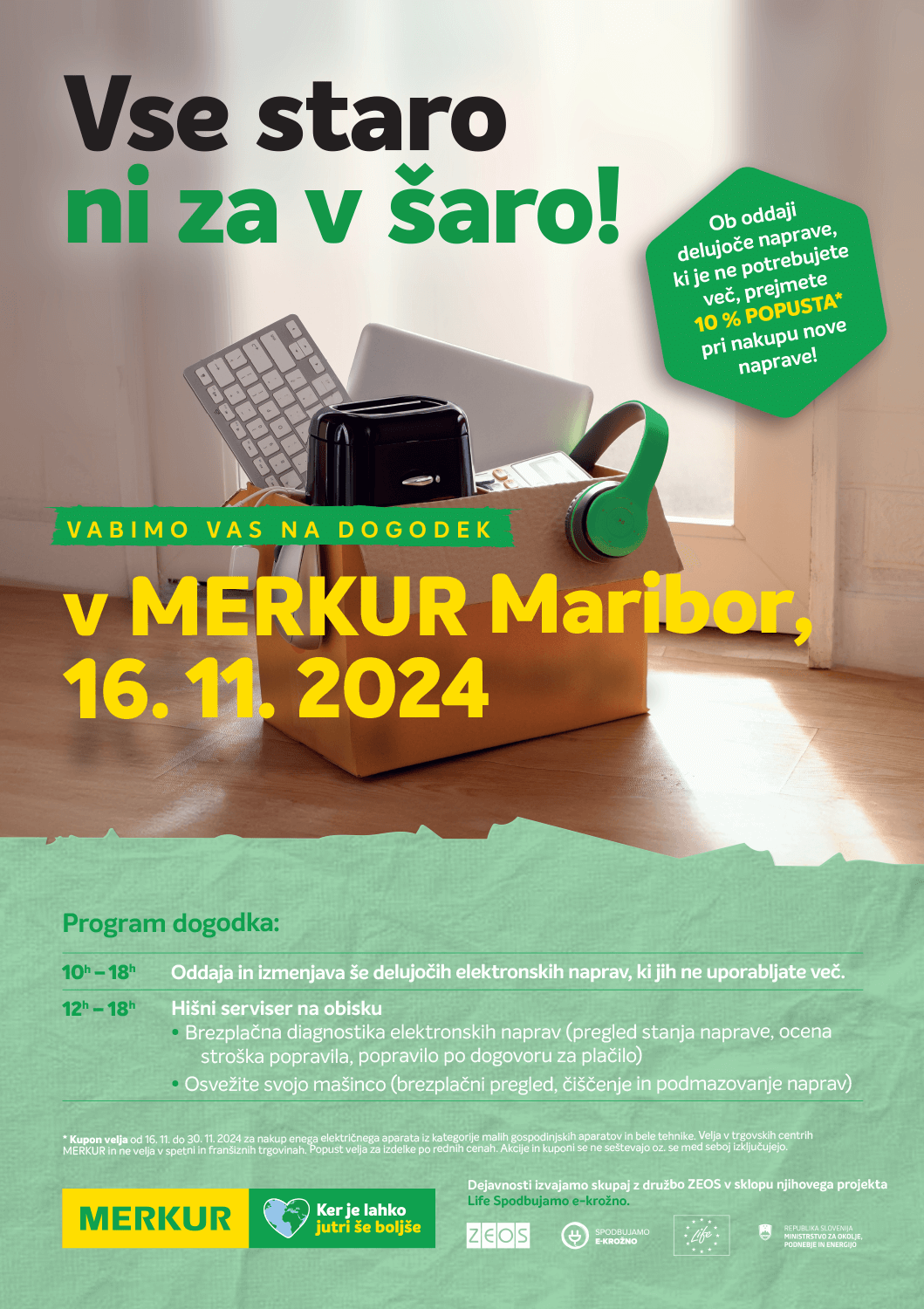 - zbiranje še delujočih malih aparatov v zameno za 10 % popusta pri nakupu novih v MERKURju;