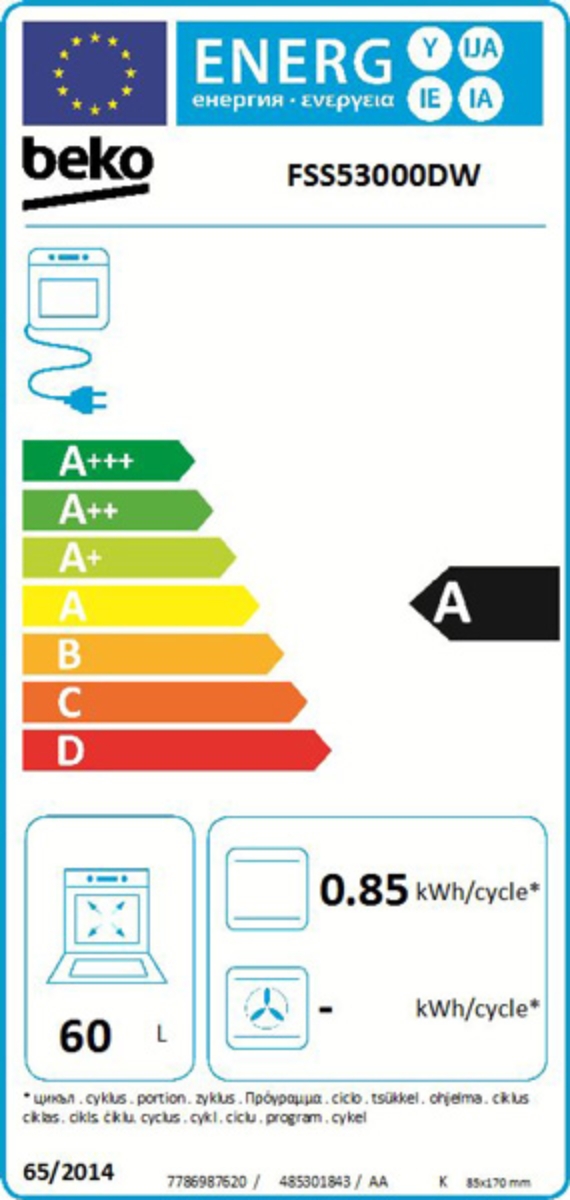 Beko kombinirani prostostoječi štedilnik FSS53000DW spada v energijski razred A. Ima štiri kuhališča, pečico s prostornino 66 l in steklen pokrov.