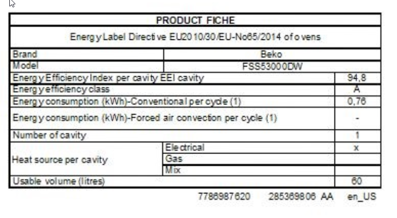 Beko kombinirani štedilnik FSS53000DW se uvršča v energijski razred A. Ponaša se s tremi plinskimi in enim električnim gorilnikom. Vse ljubitelje peke bo navdušila pečica s 60 litri prostornine. Izbirali boste lahko med štirimi programi. Opremljena je z osvetlitvijo, kar zagotavlja boljši nadzor peke. Za udobno in varno uporabo bo poskrbela dvoslojna steklena izolacija na vratih pečice. Vrata so popolnoma ravna in odstranljiva, kar omogoča zelo enostavno dostopanje in čiščenje.