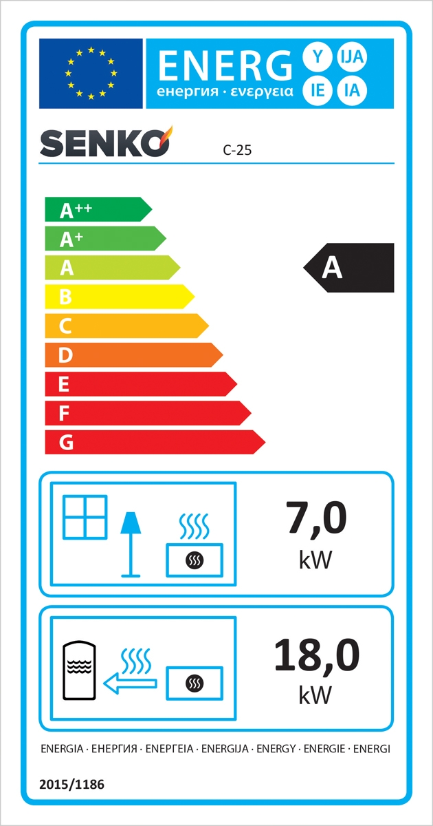 Kuhanje, pečenje,ogrevanje sanitarne vode in ogrevanje cele hiše ? centralno gretje s štedilnikom na trda goriva C-25. Konstruirani so enako kvalitetno kot manjši modeli C-20 in C-30, ampak imajo dodano pečico, da bi pustili odtis šarma tradicionalnega klasičnega kuhinjskega štedilnika in pri tem imeli funkcijo ogrevanja celega objekta s sistemom centralnega ogrevanja. Priklop dimnik na levi strani.