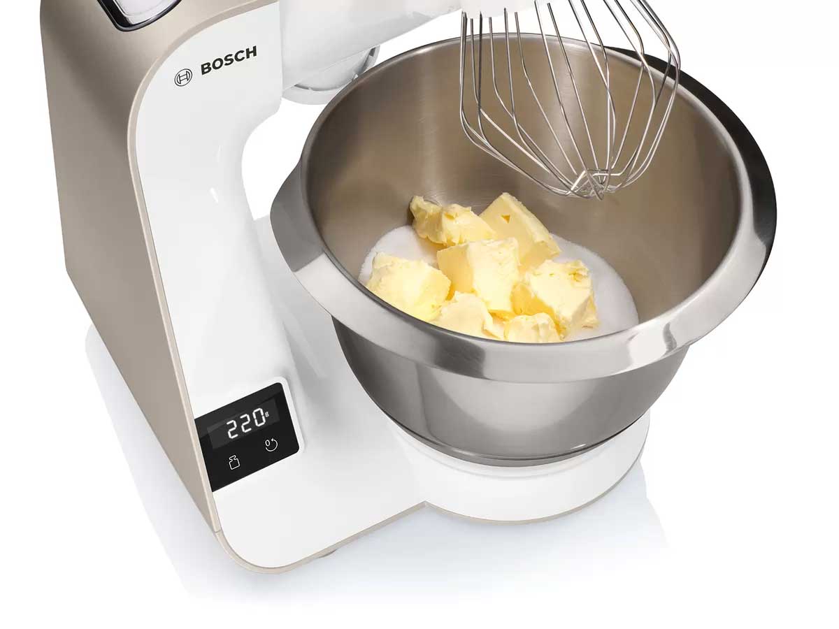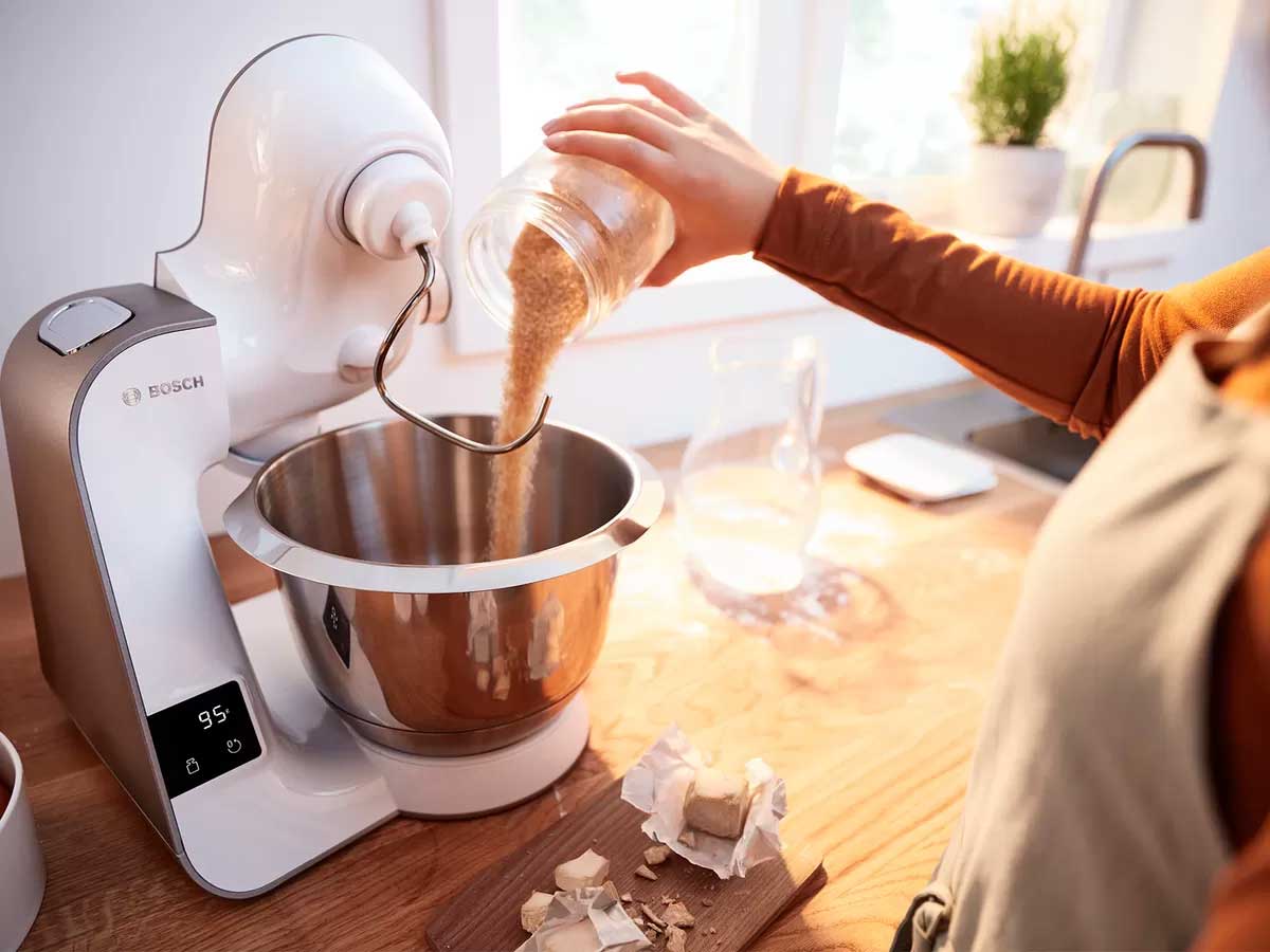 Izjemno zmogljiv 1000 W motor Bosch: izpolnjuje visoke zahteve pri peki, kuhanju in mešanju. Tudi pri pripravi težkega testa.