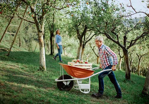 Brez naprezanjem pri delu na vrtu, v sadovnjaku ali vinogradu. Vožnja v hrib in navzdol je sedaj mogoča brez napora s pametno električno samokolnico Karjolo. Enostavna in udobna, z avtomatskim dodajanjem moči motorja in prilagajanjem hitrosti ter avtomatskim aktivnim zaviranjem navzdol.
